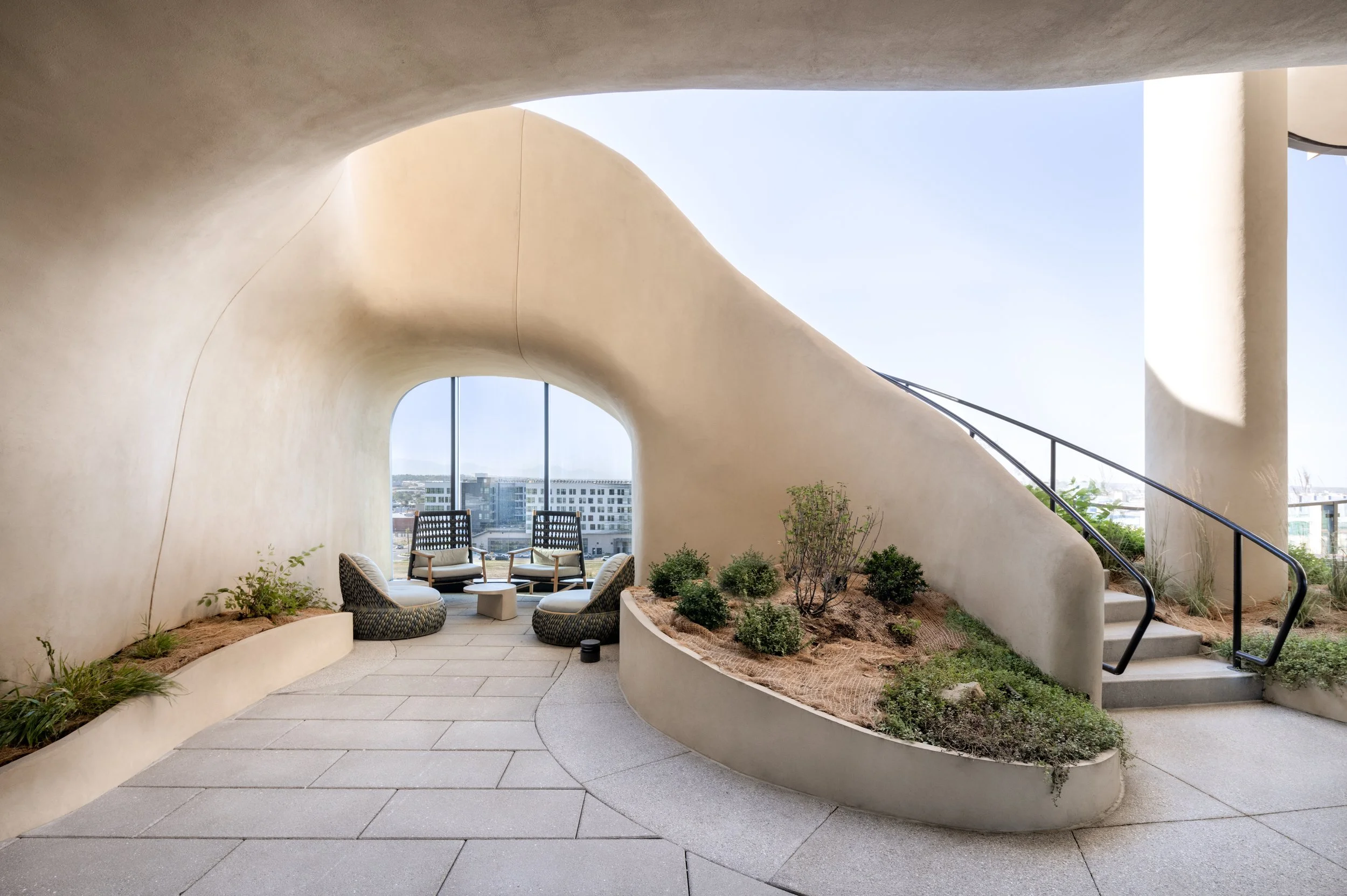 sculptural surfaces frame views of the canyon and surrounding landscape, creating visual continuity and emotional connection to the outdoors.